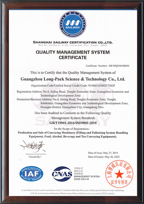 Established in 2010, We, Guangzhou Long-Pack Science & Technology Co., Ltd., are located in Yonghe Economic & Industrial Zone in Guangzhou.Covering afactoryarea of 15,000+m2,we are specializedin the R&D, manufacturing, sales & aftersalesengineeringservice for liquid packaging industry includes 5gallon filling& packaging machinery, beverage filling& packaging machinery, combibloc for 0.2-2.5L bottles and 3.5-10L bottlesas well as water treatment, beverage processing system and conveyer.