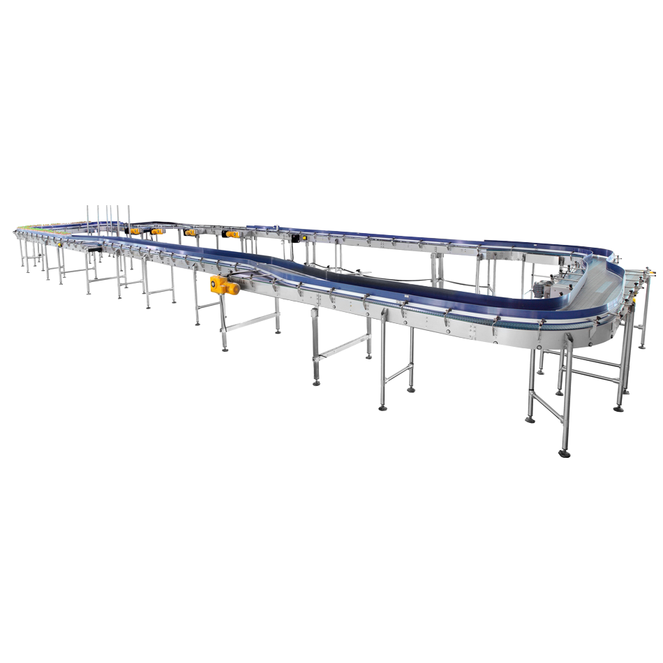 包裝輸送鏈,用于飲料生產(chǎn)線紙箱、塑箱、膜包的傳送。模塊化的設(shè)計(jì),讓輸送鏈安裝維護(hù)更加簡(jiǎn)