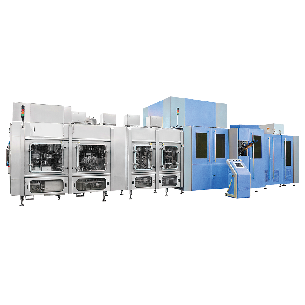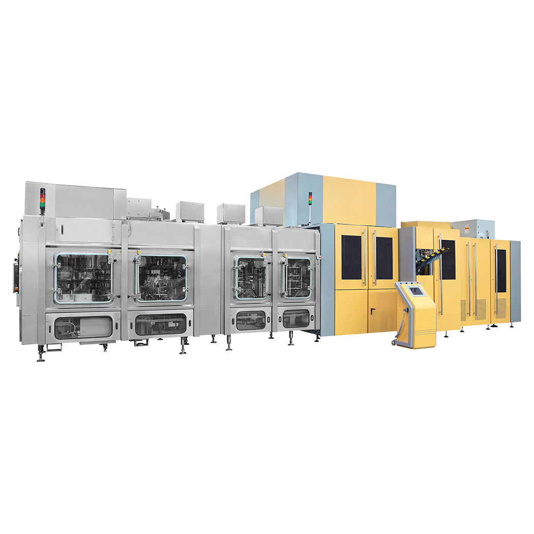集吹瓶、灌裝及旋蓋功能于一體,對一加侖進行沖洗、灌裝和旋蓋。灌裝穩(wěn)定、液位準確。